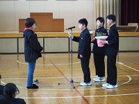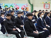 3学期も大きな行事があります。1月17日には地域との合同防災訓練、3年生を送る会、そして卒業式など・・・。生徒たちには、「よろこび合う3学期」とは、行事の成功をよろこび合うに止まらず、振り返り、課題ややりたいこと見つけ、明戸中はもっともっと成長することをよろこび合おうと話しました。