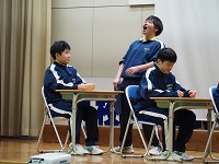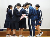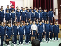 「ニコニコ・ハキハキ・チャレンジあふれる学校 自己の内面を磨きつながる力を育む明戸中学校」のスローガンのもと、1学期は「みんなで認め合う1学期」、2学期は「みんなで高め合う2学期」、いよいよ3学期は「みんなでよろこび合う3学期」になります。生徒たちは、1・2学期を通し、仲間を尊重し、理解し認め合い、そして、自分の意見もしっかり述べて、互いに納得し、行動する、高め合うことを、保護者や地域のみなさまのご協力を得て、学校生活の中で学び体験してきました。また、自己の内面や人と協働していくための力を培うため、「時場礼」や「深谷の子6つの誓い」をがんばってきました。