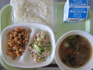 ジョア(ストロベリー)・チキンカツカレー・ハムと大根のサラダ・ガリガリ君