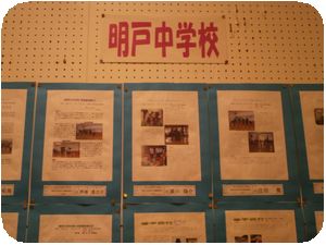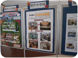 明戸中学校は3年生の修学旅行や家庭科のふれあい交流会のレポートが展示されました。