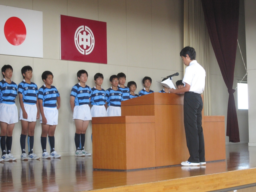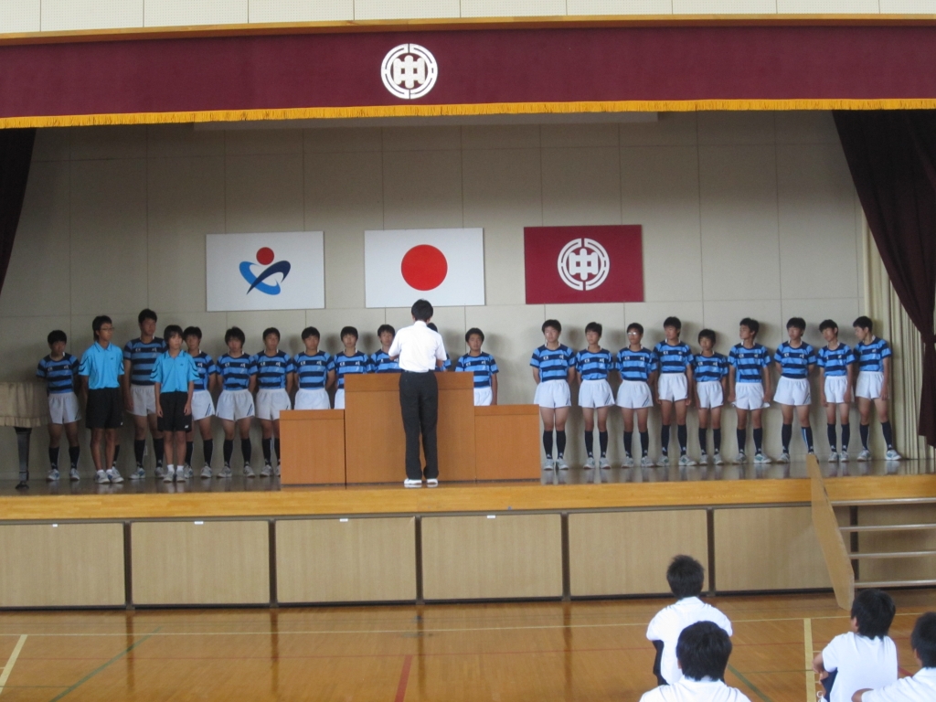 場を決めたソフトテニス部、ラグビー部の県大会への壮行会が行われました。