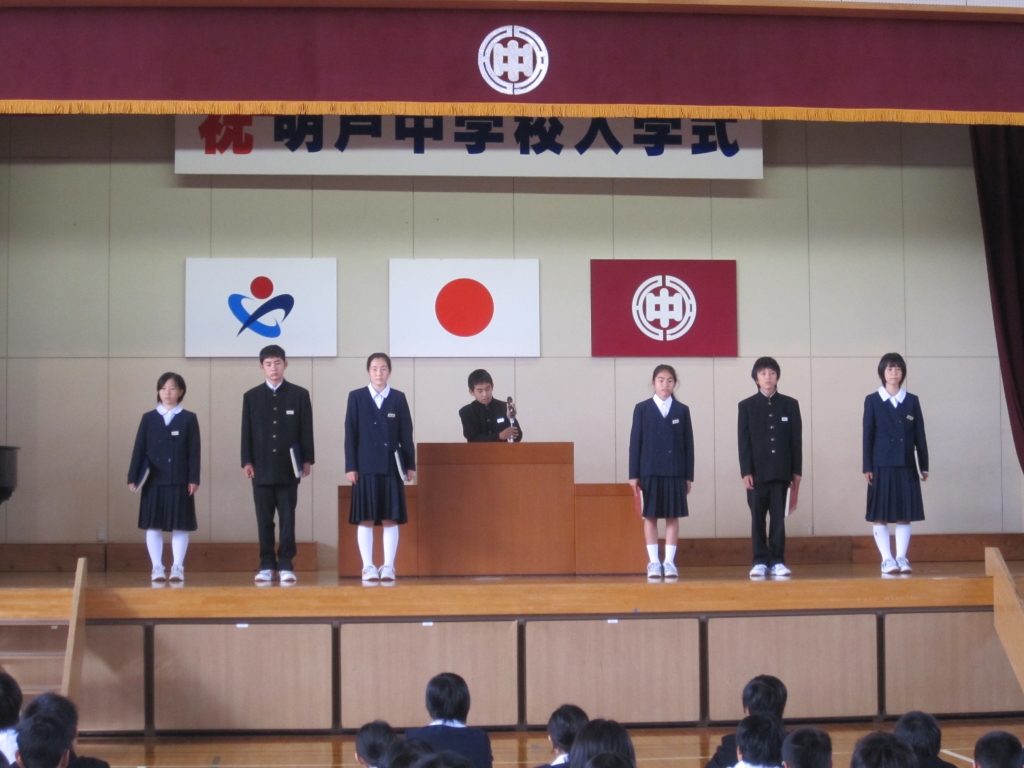 2年生へと渡りました。気持ちを引き締め、明戸中を背負っていく自覚を新たに