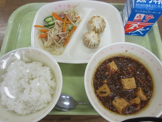 牛乳・麻婆ラーメン・お揚げのサラダ・彩の国肉まん・はちみつゆずゼリー