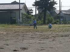 今年は天気が良く、暑い中での環境整備作業になりましたが、PTA、生徒、地域ボランティアのみなさん、明中のために作業ありがとうございました。まるでサバンナのようなグランドがよみがえり、2学期からの体育祭の練習にケガ無く取組めそうです。ありがとうございました。