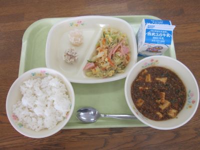 今日の給食の麻婆豆腐の豆腐はいつも使っている絞り豆腐と違い、少し柔らかい木綿豆腐を使用しました。