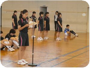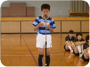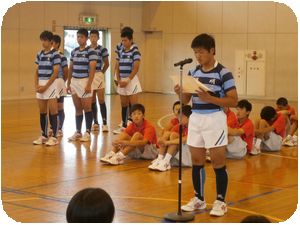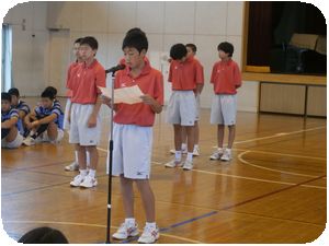 各部の1・2年生から激励と感謝のことばの後、3年生と陸上の笹井君より大会にのぞむ決意表明が発表されました。