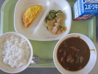 ジョア(ストロベリー)・チキンカツカレー・ハムと大根のサラダ・ガリガリ君