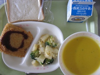 牛乳・コロッケサンド・イタリアンサラダ・クラムチャウダー