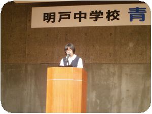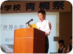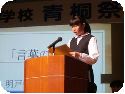 開会式では校長先生と実行委員長からのことばと、スローガンの紹介がありました。
