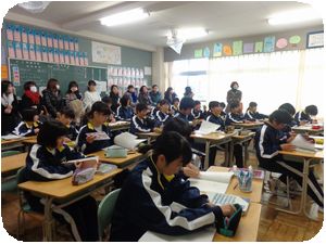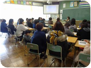 雪が降り足もとの悪い中、多数の保護者が授業参観と学級懇談会に参加しました。