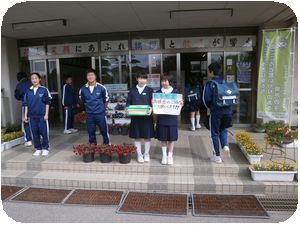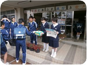 登校時に生徒会主催で熊本地震の義援金の募集が行われました。