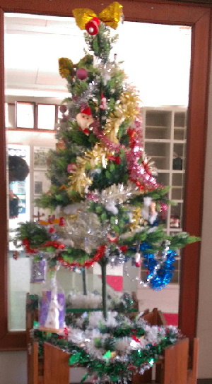 玄関の花が、クリスマスツリーに・・