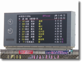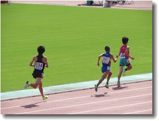 でした。途中、9番手まで、順位を下げながら、最後の一周で、二人抜いて、7位に入りました。決勝には出場できませんでしたが、大健闘の結果でした。御苦労様でした。明日、3000m走も出場します。頑張ってください。