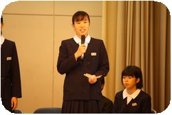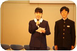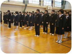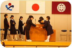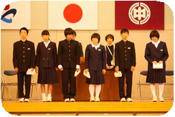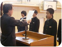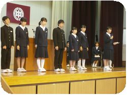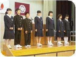 生徒会本部役員と後期学級委員長の任命式。新旧の生徒会本部役員の引継式が行われました