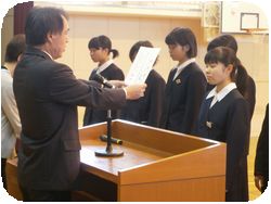 校長先生から新本部役員と学級委員長に任命書が手渡されました。