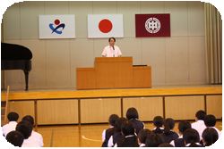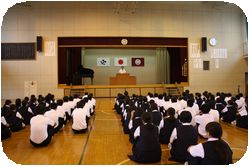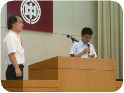 校長先生から「努力する夏休み」について講話がありました。また、全国大会に出場した笹井君からも大会での様子について話がありました。