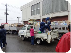 小雨が降ったりやんだりの中、計画通り資源回収を実施することができました。地域の皆様、PTA役員の皆様、生徒の皆さん、雨に濡れながら協力、ほんとうにありがとうございました。おかげさまで雨にもかかわらず例年どおりの資源が集まりました。