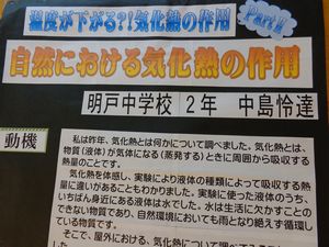 9月6日(土)に深谷市科学展覧会が開催され、本校からは中島君(2年)、吉川君(2年)、岩田さん(1年)の作品が出品されました。