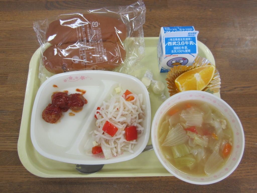 牛乳・麻婆ラーメン・お揚げのサラダ・彩の国肉まん・はちみつゆずゼリー