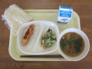 牛乳・うま煮丼・国産野菜コロッケ・切り干しとツナのサラダ