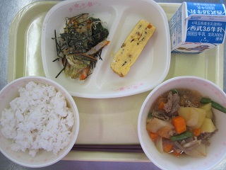 牛乳・うま煮丼・国産野菜コロッケ・切り干しとツナのサラダ