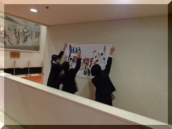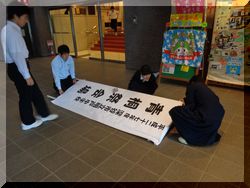 会場が学校から離れて実施なので、朝、荷物を運んで準備です。