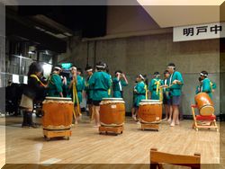 1・2年は外で最後の歌練習。3年は太鼓の準備。