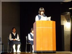 個人発表の部は箏の演奏、ピアノ独奏、英語スピーチ、人権メッセージ