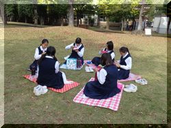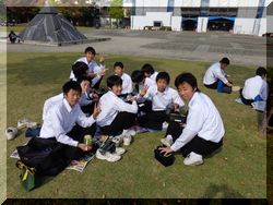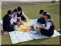 昼食は広場でお弁当