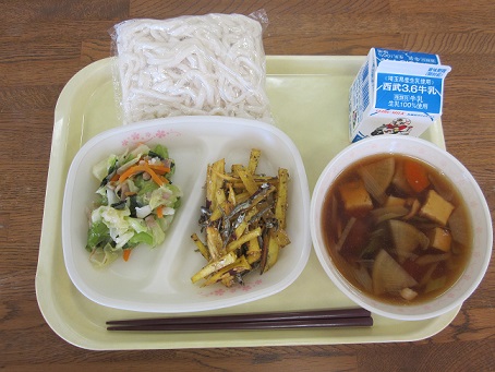 牛乳・うま煮丼・国産野菜コロッケ・切り干しとツナのサラダ