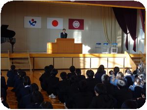 冬休みが終わり、今日から3学期がスタートします。体育館で始業式が行われました。