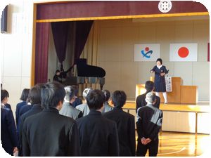 校歌の伴奏と指揮は今回から2年生コンビになります。