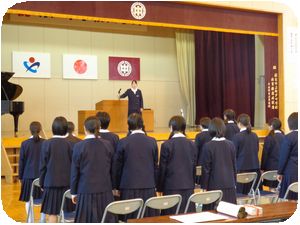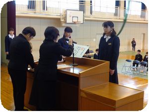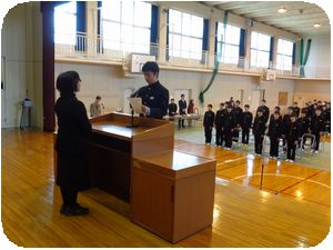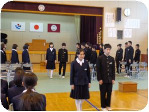 本番と同じに進行して問題点がないかチェックしました。素晴らしい卒業式ができるよう、みんな真剣に行っています。