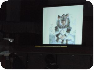 「100万回生きたねこ」の朗読と生徒おすすめの図書の紹介がありました。