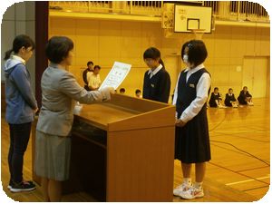 その後はバドミントンの市民大会での優勝とふれあい人権セミナーでの発表の表彰がありました。