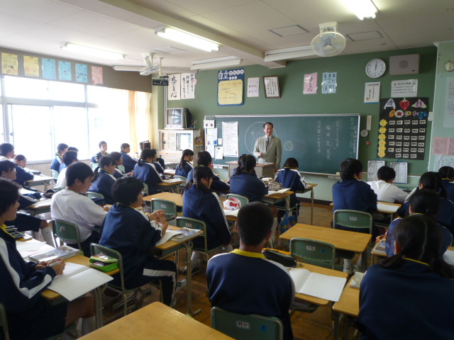 お話を伺いました。2年1組の生徒は、講師の先生に熱い視線を注ぎ、話に