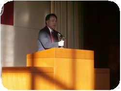校長先生から「50年後はどんな生活をしているか想像してみよう。」という問いかけから話が始まり。学者や書物からもわからない。けれど『前向きに生きていく力』。つまりチャレンジする力がこれからの世の中では大切であることが講話としてありました。若いときにたくさんのチャレンジをして、失敗も経験してそこからはい上がる力を身に付けて欲しい。授業中に間違えることやわからない事を質問するのは大切なことである。