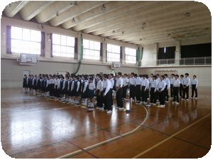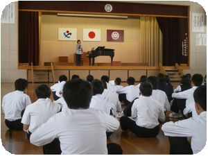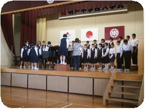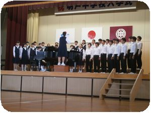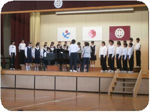初めての全体練習で、入退場の動きの確認をやりながら実際に各学年が歌いました。