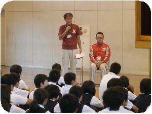 日本赤十字社から金子さんがいらして義捐金が被災者にわたされるまでの流れや、実際に熊本地震の救援活動に行ってきた様子の話をしていただきました。