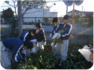 今朝、3年生の有志が早めに登校して学校農園で育てた大根の収穫を行いました。