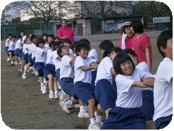 その後100m走と縦割りリレー、みんなでジャンプ、綱引き、借り物競走、全員リレーを確認しました。