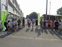 生徒会本部役員の4名が、明戸小学校西門で、小学校の児童委員と一緒に大きな声であいさつ運動を行いました。さわやかに晴れ渡った快晴の空のもと、新緑の緑も目にまぶしくさわやかな気分になりました。これは、明戸中学校前期人権月間の取り組みの1つとして行われました。