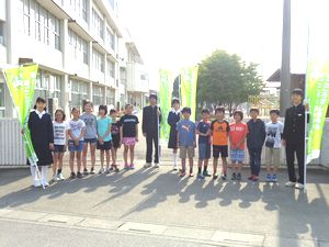 5月12日(金)明戸小学校で小中合同のあいさつ運動が行われました。