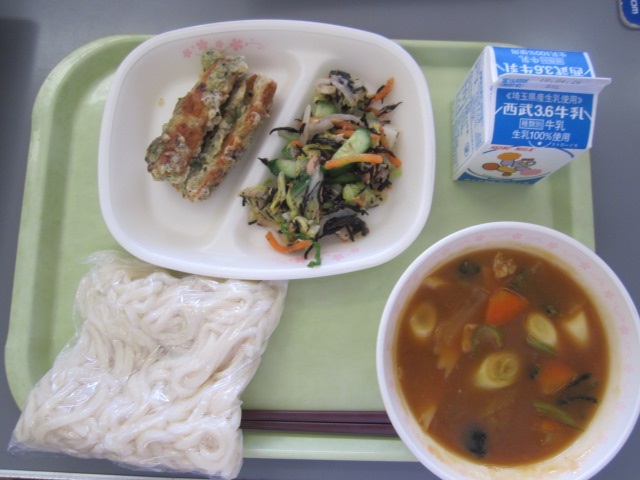 牛乳・麻婆ラーメン・お揚げのサラダ・彩の国肉まん・はちみつゆずゼリー