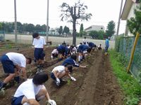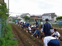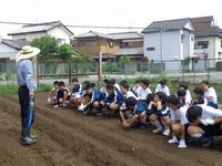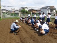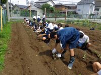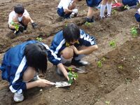 6月9日(月)、1年生全員でサツマイモの苗を学校の畑に植え込みました。無事に収穫できるよう、しっかり育てていきましょう。