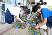 今年度第1回の花はなプランが放課後実施されました。地域支援本部、緑化委員とボランティアの生徒、職員で行いました。花壇を自分たちでデザインし苗を植えました。正門裏門、校舎前、駐車場など人の目の届くところにきれいな花壇ができました。「環境が人をつくる」潤いのある風景が戻りました。ありがとうございました