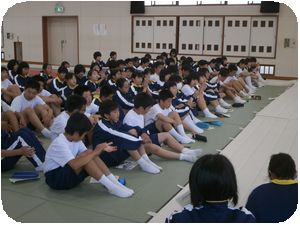 6校時に1年、2年合同で宿泊体験学習に向けての集会が行われました。