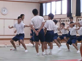今日は赤・白・青組に分かれて「よさこいソーラン」を2・3年生が1年生に教える活動が行われました。
