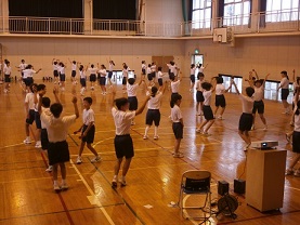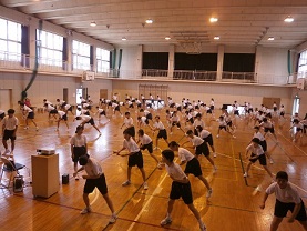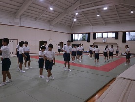 体育館と武道場の2か所に分かれてそれぞれ先輩が後輩に教えていました。