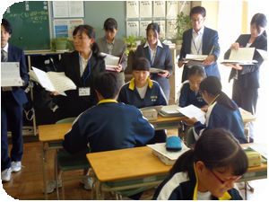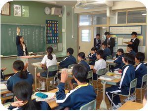 27人の新任教員が見守る中、緊張した顔つきで2年生が授業に取り組んでいました。